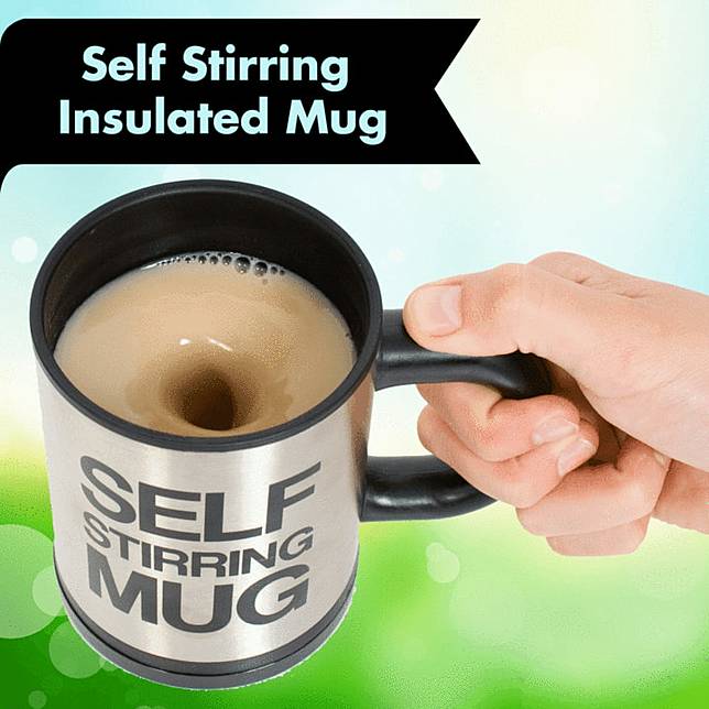 Kenalin nih mug dari masa depan. Mug ini bisa mengaduk minuman sendiri. Lo nggak perlu capek dan buang waktu buat ngaduk kopi atau teh lo. Si mug ini udah bisa melakukannya secara otomatis.