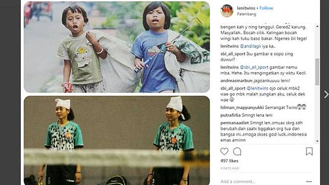Demikian yang Leni tulis dalam deskripsi fotonya tersebut. Menurut Leni, foto tersebut mungkin bukanlah foto ia dan kembarannya. Ia menemukan foto tersebut dan mengingatkan perjuangannya sewaktu kecil. Hal tersebut justru membuat salut para pengikutnya.
