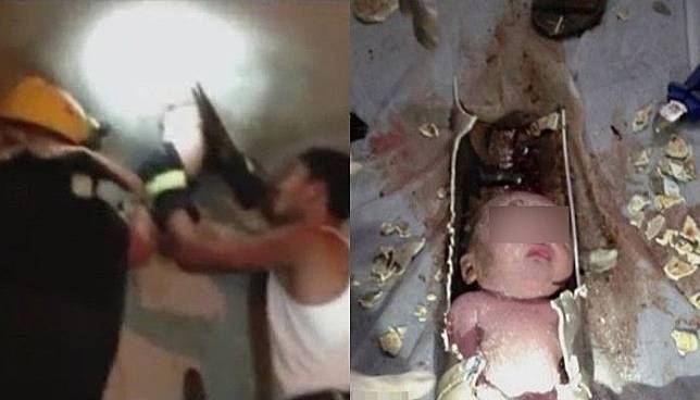 Dengan hati-hati polisi membongkar pipa tersebut dan setelah berhasil membukanya, mereka menemukan sesosok bayi yang terselip di dalam pipa ini.