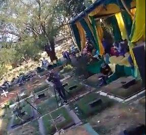 Dalam video yang diunggah oleh akun Facebook Eris Riswandi tersebut, tampak tempat pemakaman umum dijadikan tempat untuk menggelar pesta pernikahan. Tak hanya tenda yang terpasang, tapi juga sebuah panggung dangdutan.