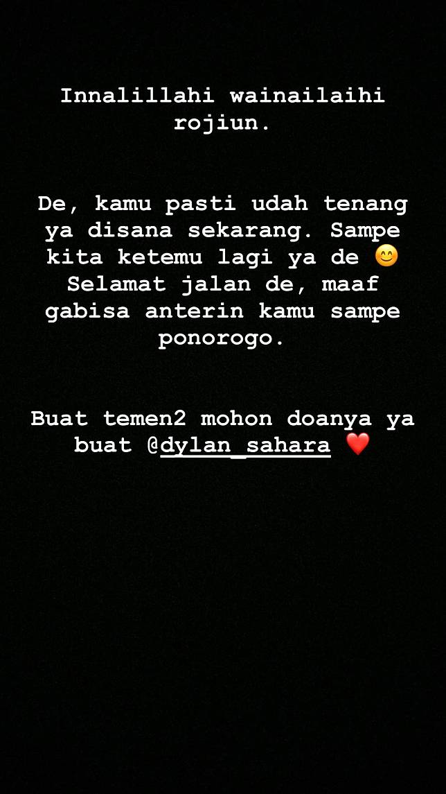 De, kamu pasti udah tenang ya di sana sekarang.