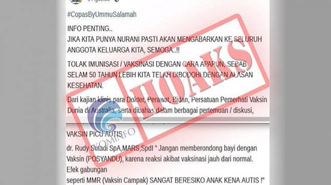 Imunisasi tak jarang mendapatkan penolakan dari beberapa kelompok masyarakat karena adanya informasi yang tidak lengkap tidak benar atau hoax. Salah satu hoaxtentang vaksin imunisasi yang cukup viral adalah isu konspirasi penyebaran virus atau penyakit melalui vaksin. Dikabarkan vaksin yang digunakan imunisasi mengandung sel-sel hewan, virus, bakteri, darah, dan nanah.