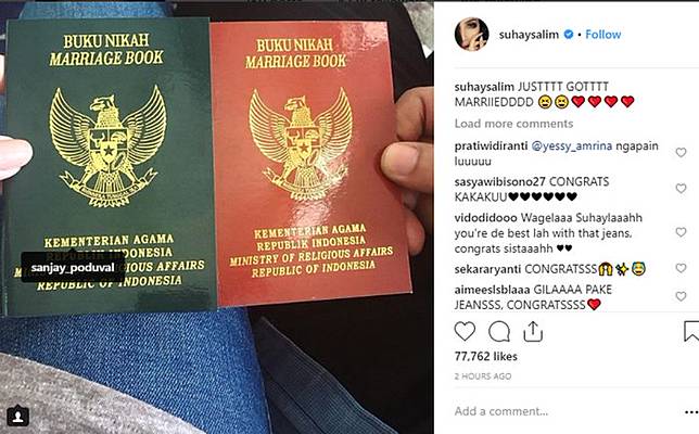Suhai juga memamerkan buku nikah yang nenandakan jika keduanya telah resmi menjadi suami istri.