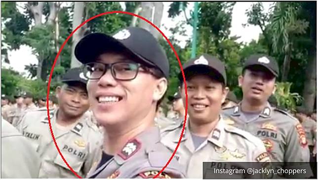 Meski kerap berpenampilan nyentrik, Bang Jack nampak berbeda 180 derjat saat mengenakan seragam polisi.