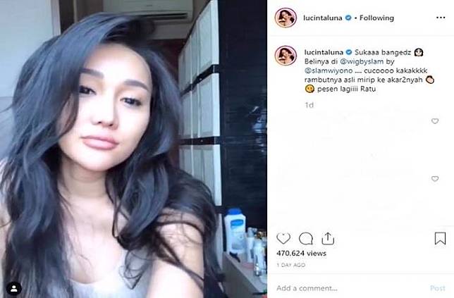 ''Sukaaa bangedz Belinya di @wigbyslam by @slamwiyono …. cucoooo kakakkkk rambutnya asli mirip ke akar2nyah pesen lagiiii Ratu,'' tulis Lucinta Luna dalam unggahannya.