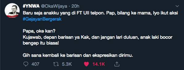 HAI-ONLINE.COM - Kata siapa kalo demo itu ditentang orang tua? Para ayah ini adalah contoh kalo mereka mendukung anaknya untuk menyuarakan aspirasi.